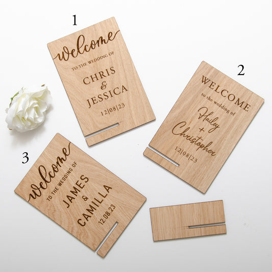 'Welcome to the wedding of' wooden sign