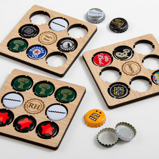 Shop our wide range of personalised beer gifts including beer cap wall hangings, coasters, beer openers, clocks and frames.