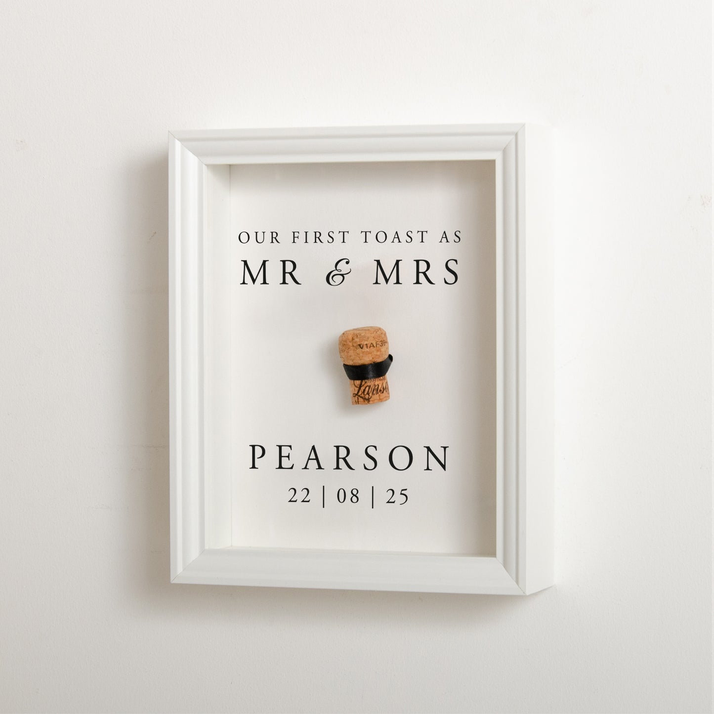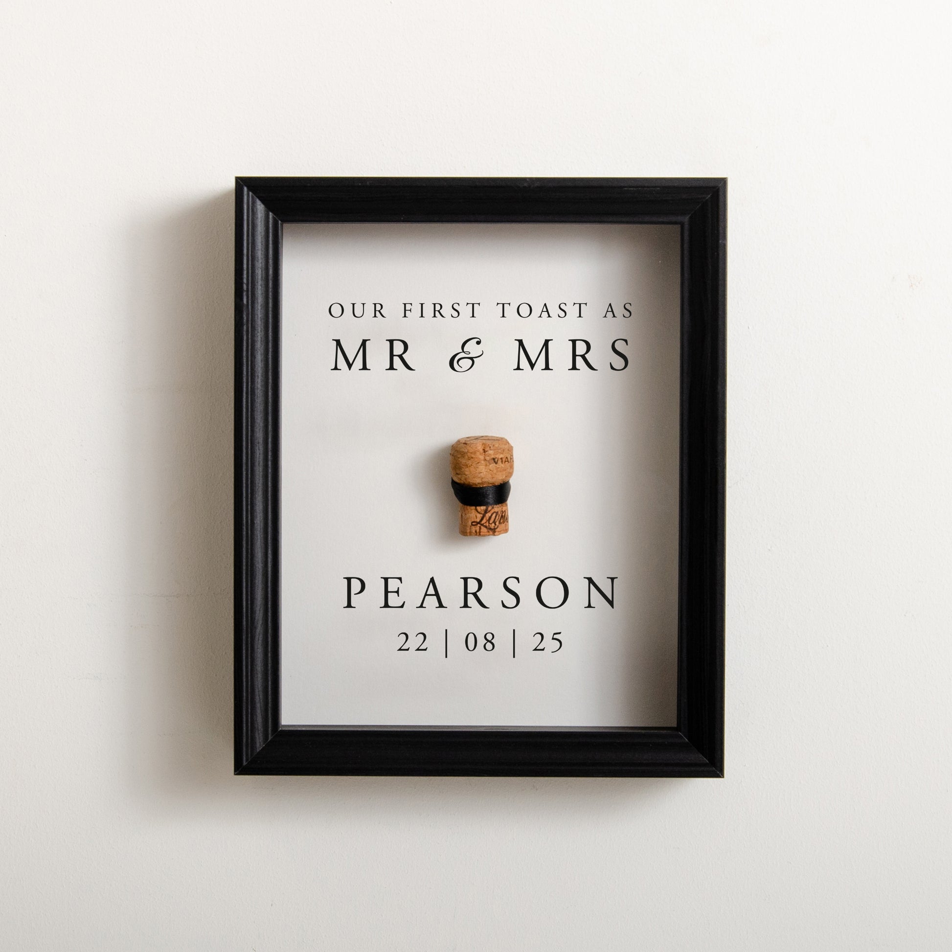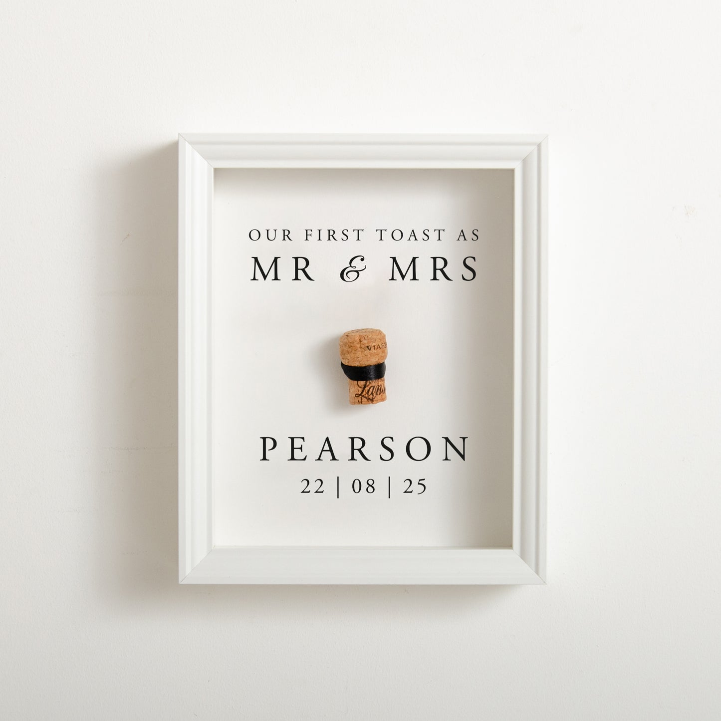 Mark a milestone moment with this beautifully personalised cork display frame – the perfect way to preserve the memory of the first toast shared as a newly married couple, or when you first got engaged.