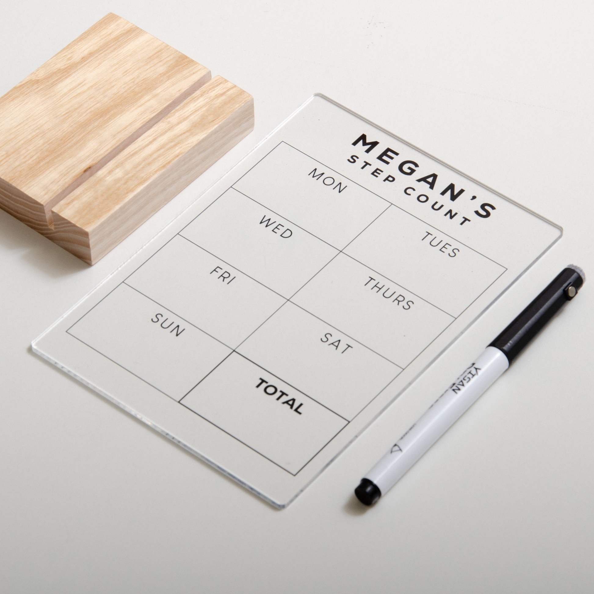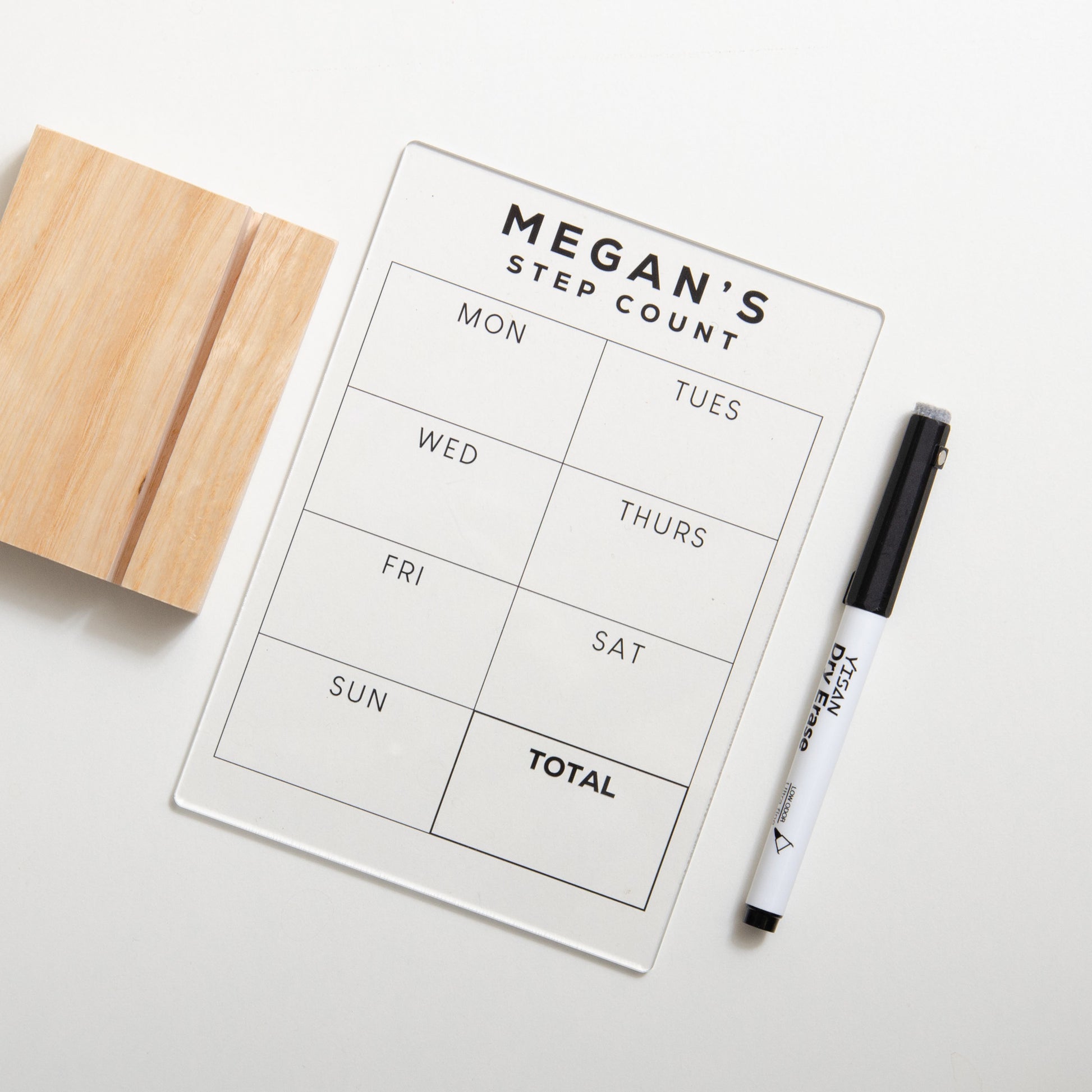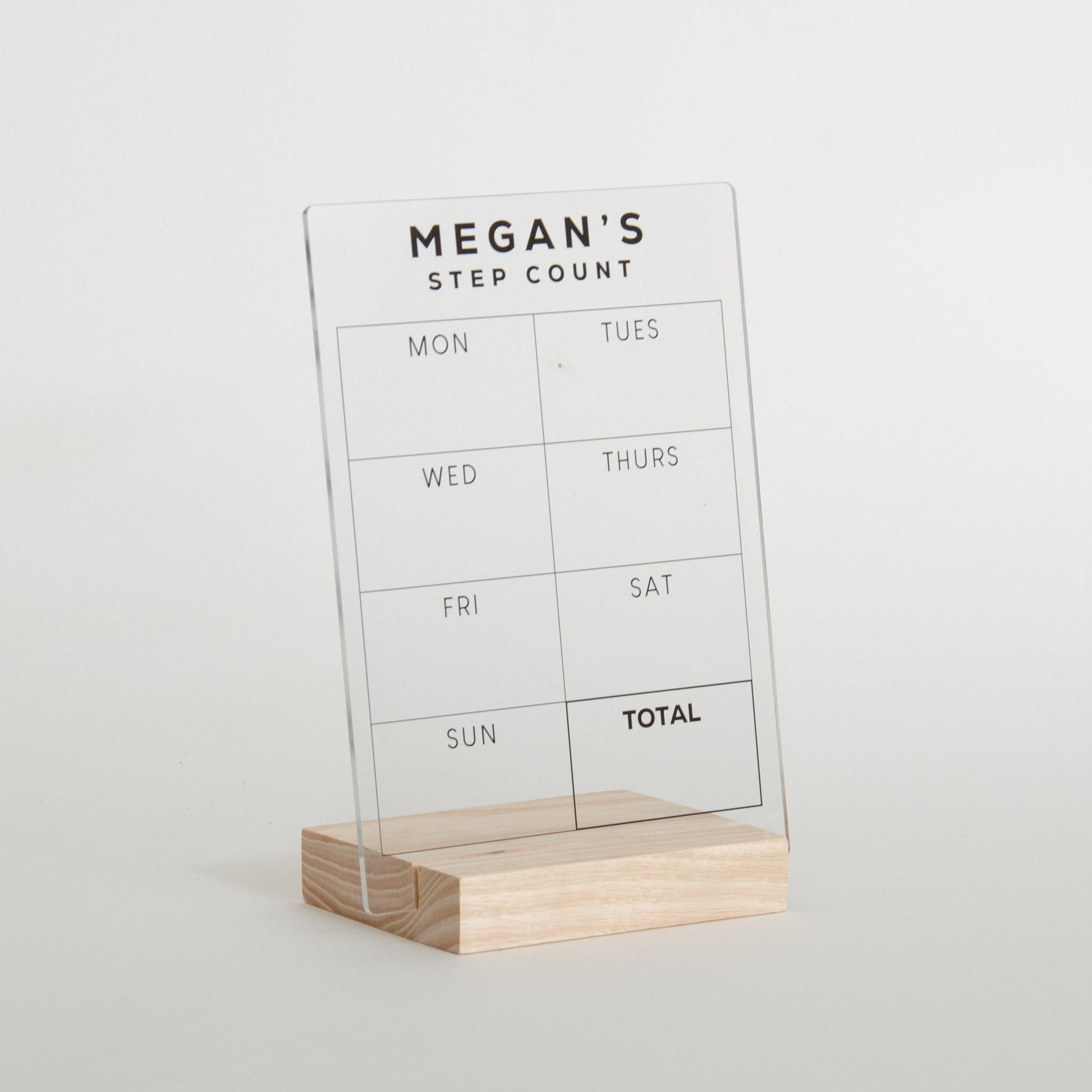 Track your daily steps in style with our personalised acrylic sign, a fun and motivational way to record your progress each day and total your steps at the end of the week. Perfect for displaying on your desk, home gym wall, or any space where you want to stay inspired.